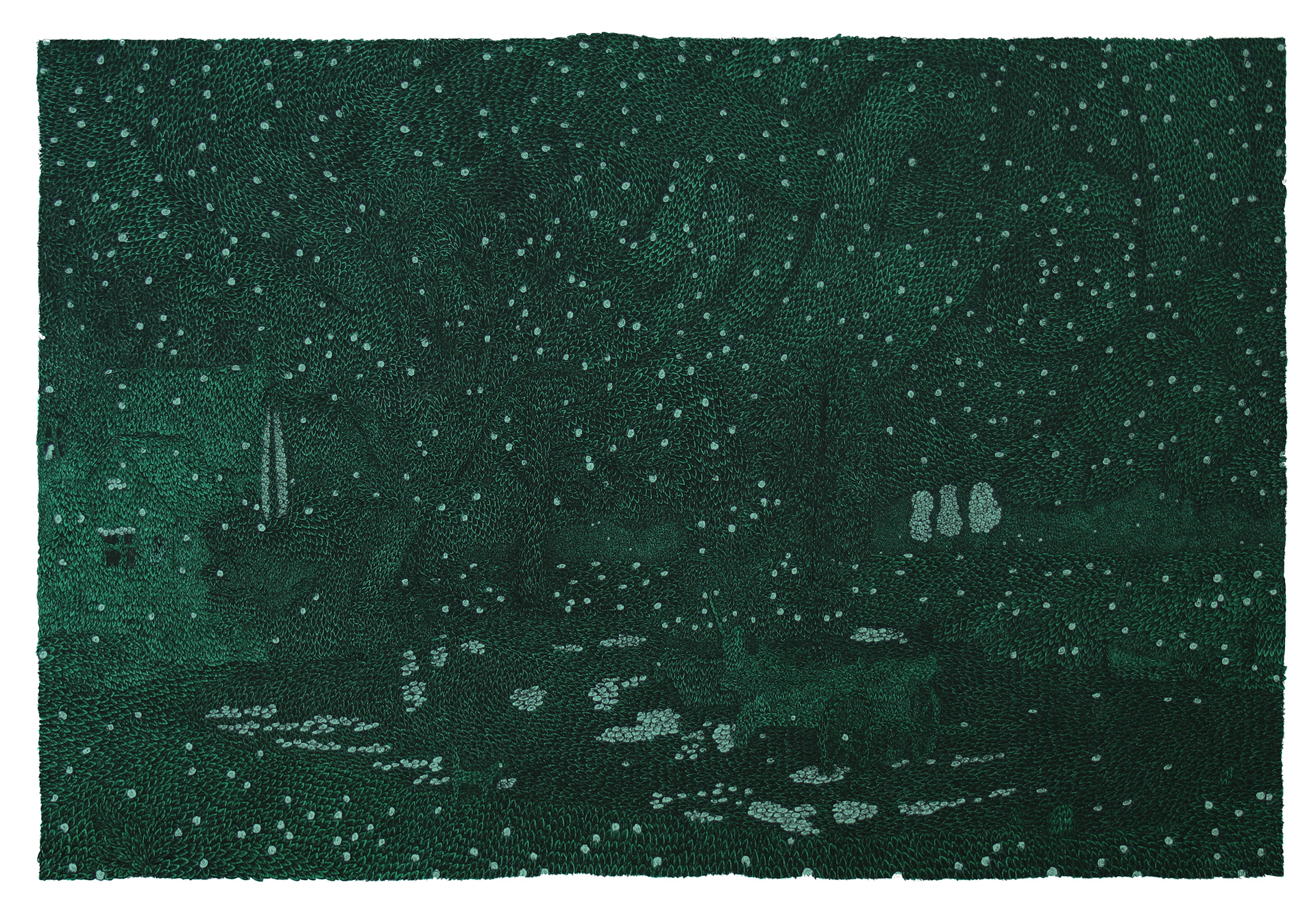 For a little while I was very interested in drawing things as though they had been overgrown with bindweed. These speculative drawings were very time consuming, permanently ruined my eyesight and proved meagre in financial return. People don't want to buy an A4 drawing for £8000 just because it took some poor idiot 6 months to do. My final Bindweed piece was an ambitious A2 rendering of Constable's Haywain, which took about five years to do. I thought I had lost it, but I just found a reasonable photograph (below).
