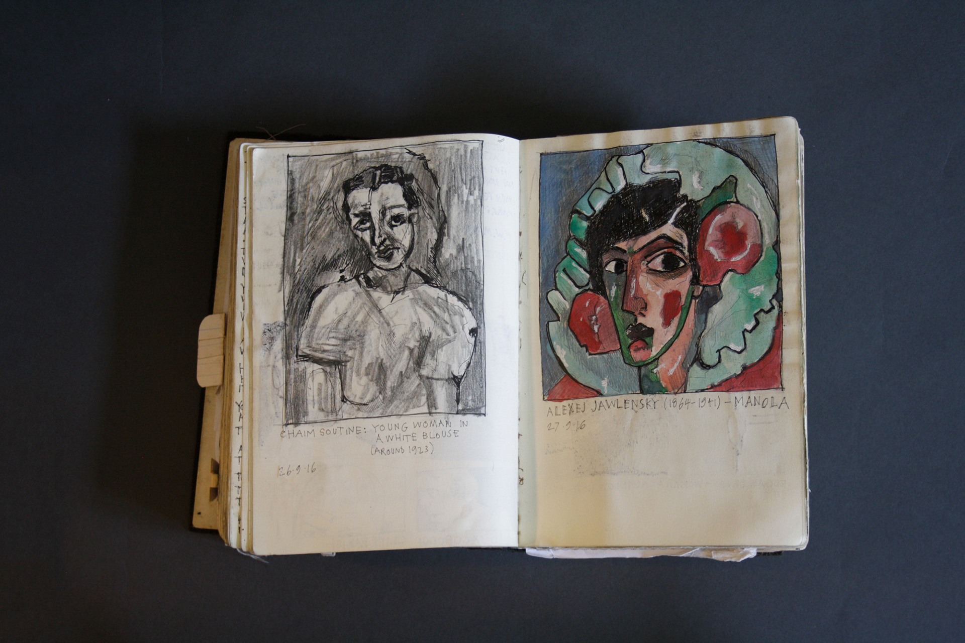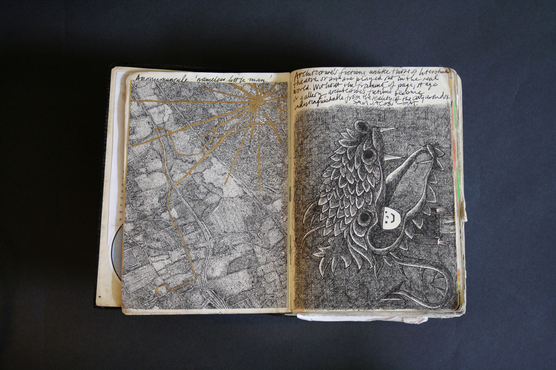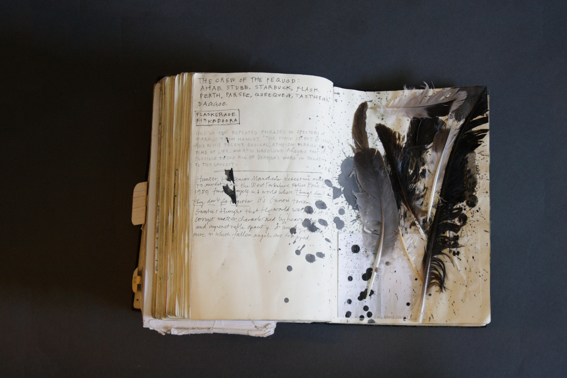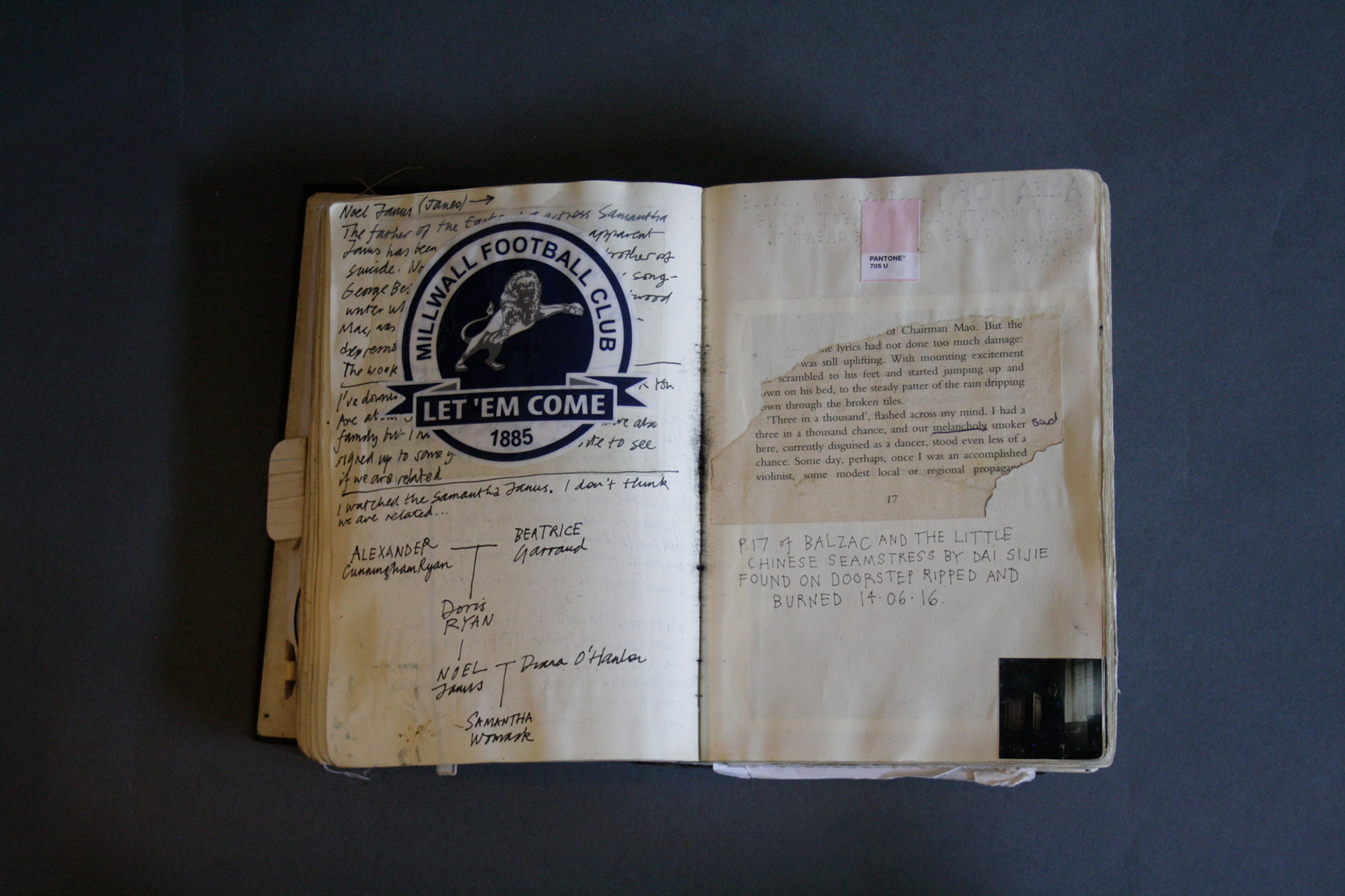 I have been carrying a Venezia Romantica leather bound A5 Black Book wherever I go since I was given this one by my previous colleagues at LukeCharles design agency for Christmas in 2015. I am continually working in it, making notes, research, quotes, photographs, pormanteau scrapbooking, painting, drawing and any other technique that comes to mind. It is an important part of my artistic practice, working on ideas for future works and recording the processes of development.