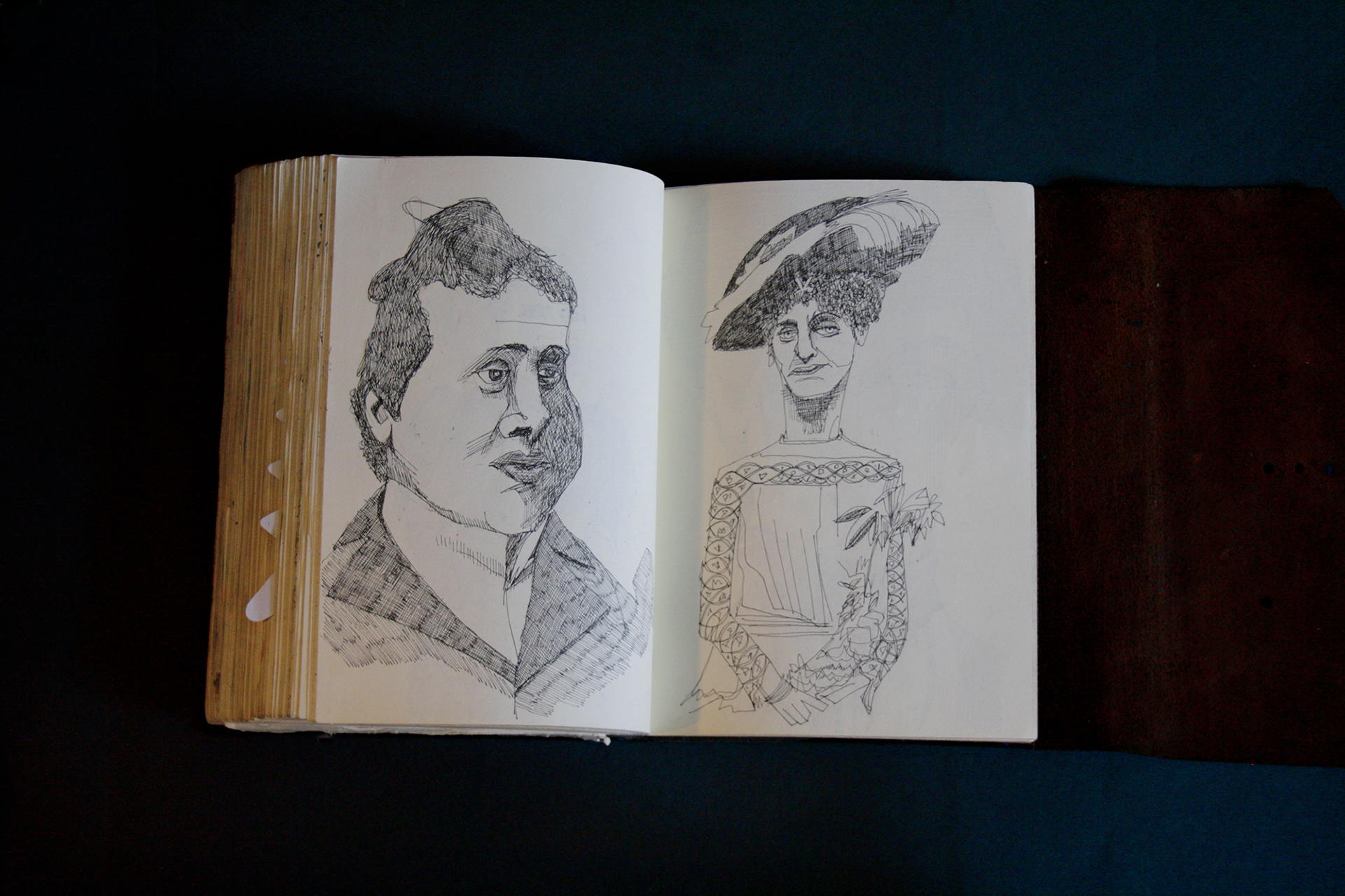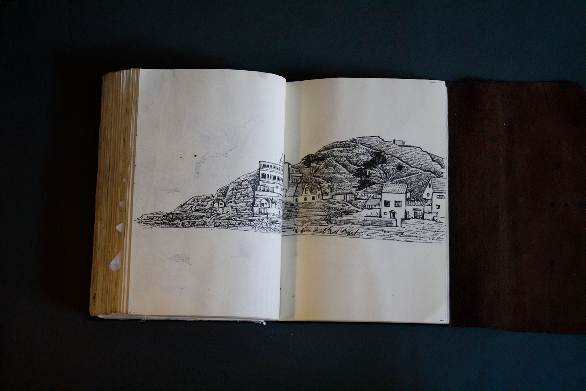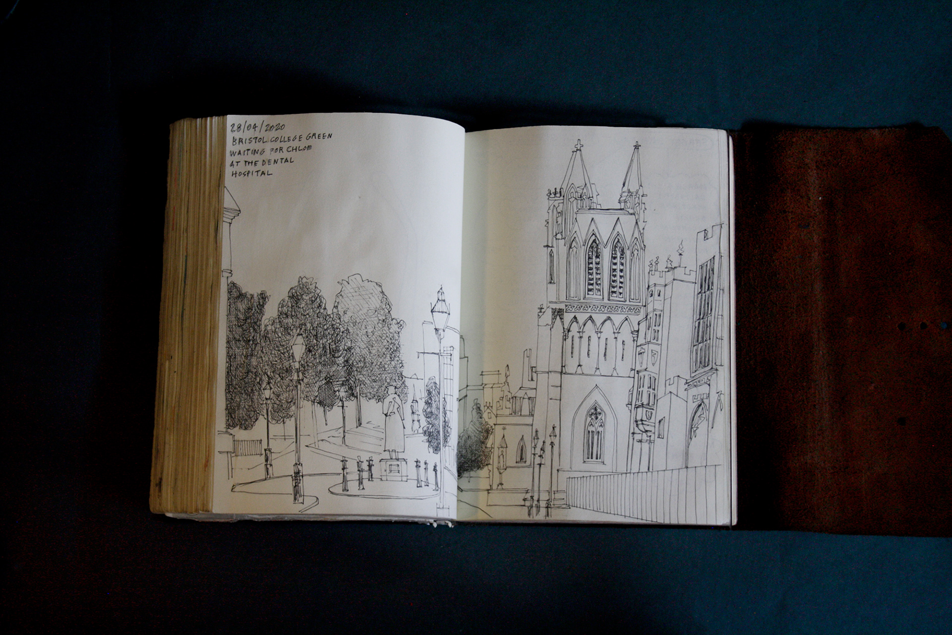 When I reached the end of the first Black Book, I went to use another sketchbook, but it did not feel right. Venezia Romantica Leather bound A5 note books are not cheap, but it seemed to me that if I were to fill one up every 2 years, I could justify the expense. The first book had become unwieldy because I stuck a lot of things into it. So, for book 2, I decided to paint and draw and write and lay off the scrap booking. 2019-2020