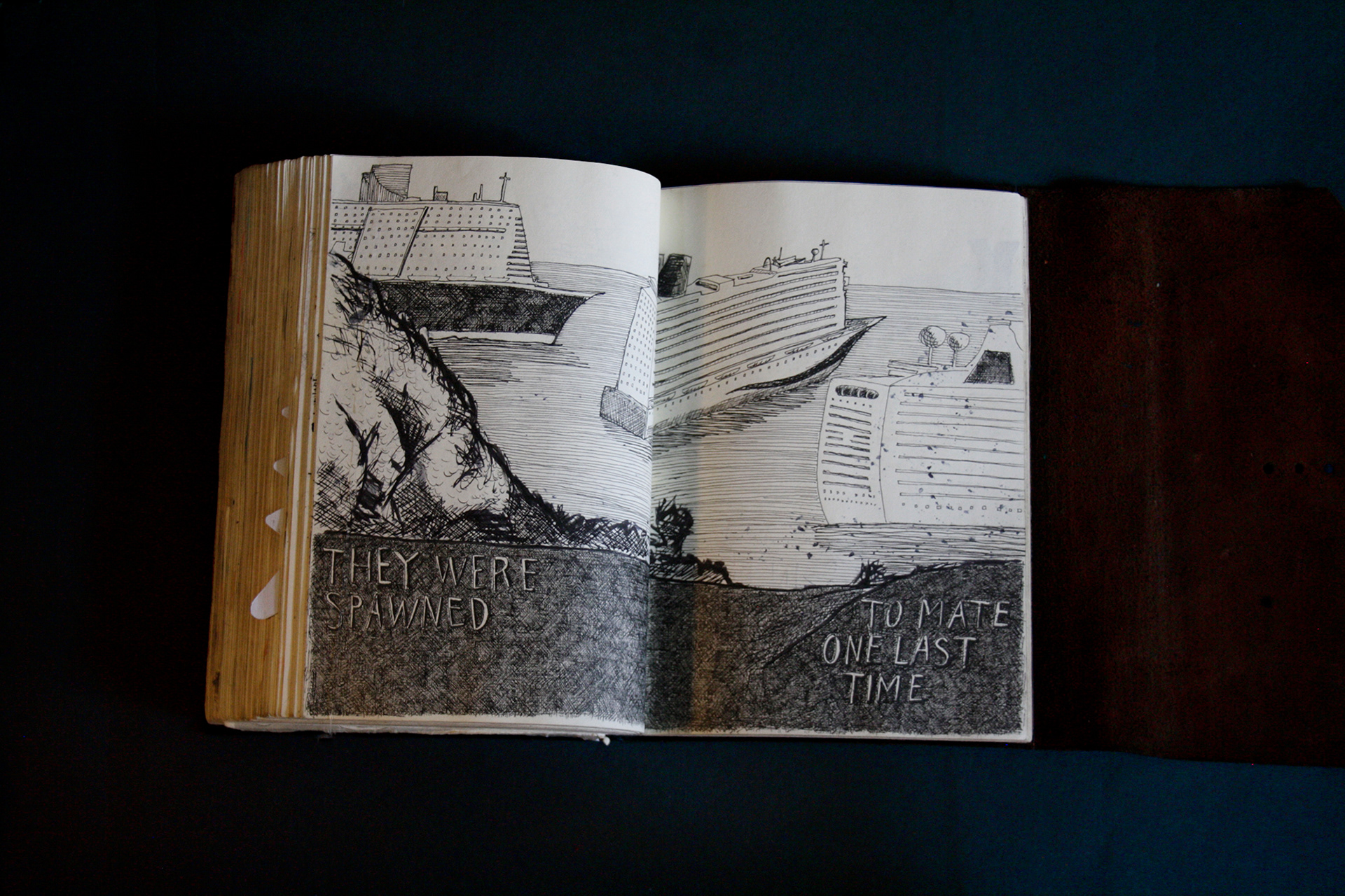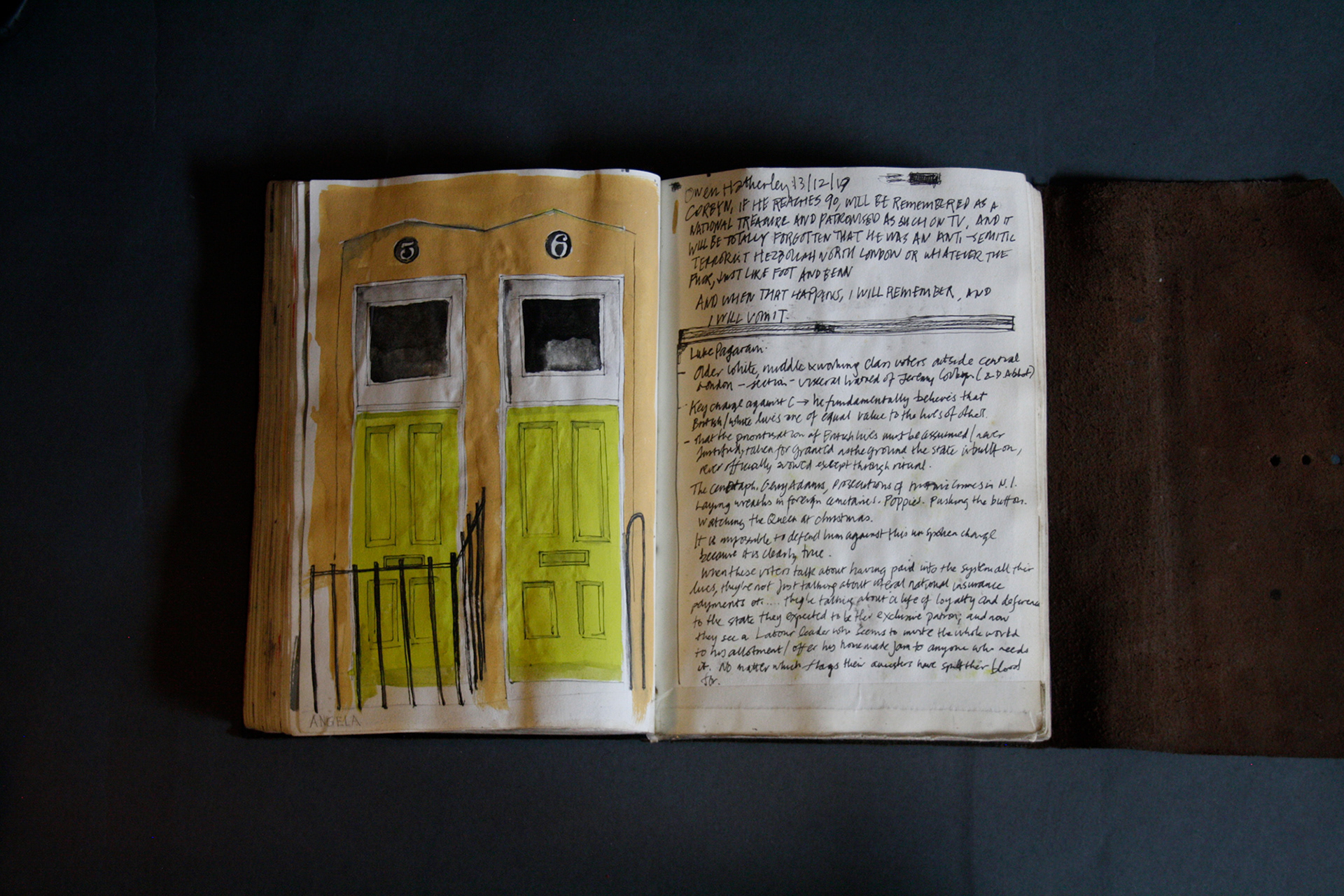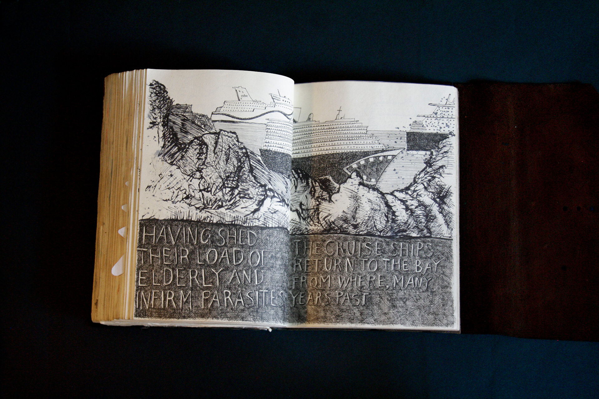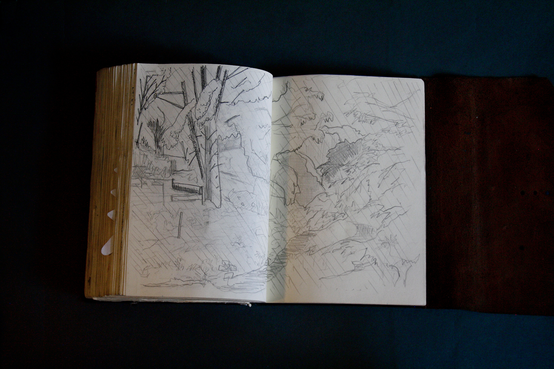 When I reached the end of the first Black Book, I went to use another sketchbook, but it did not feel right. Venezia Romantica Leather bound A5 note books are not cheap, but it seemed to me that if I were to fill one up every 2 years, I could justify the expense. The first book had become unwieldy because I stuck a lot of things into it. So, for book 2, I decided to paint and draw and write and lay off the scrap booking. 2019-2020