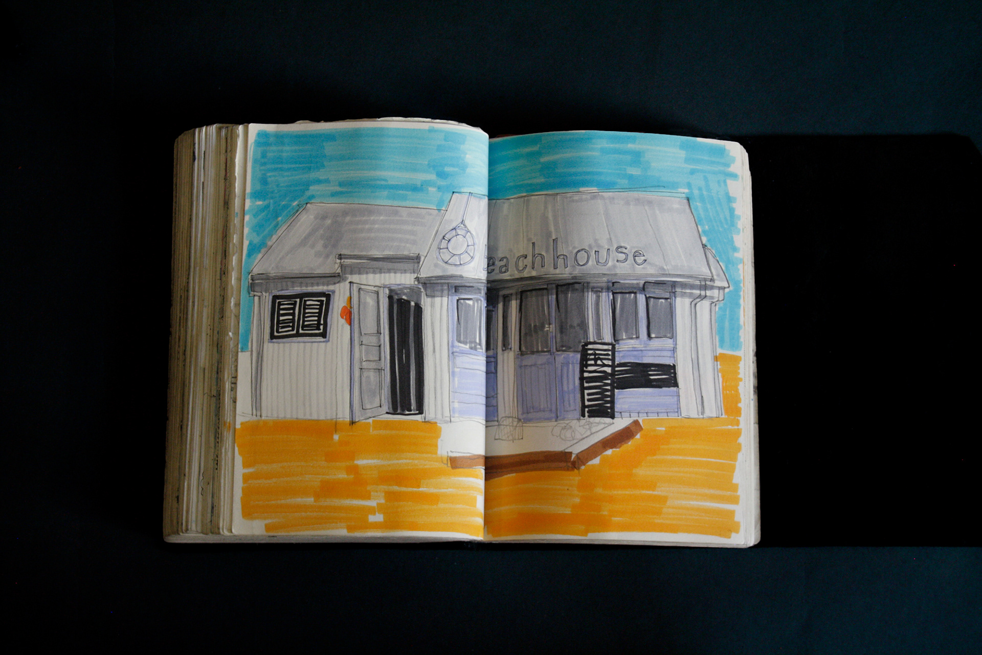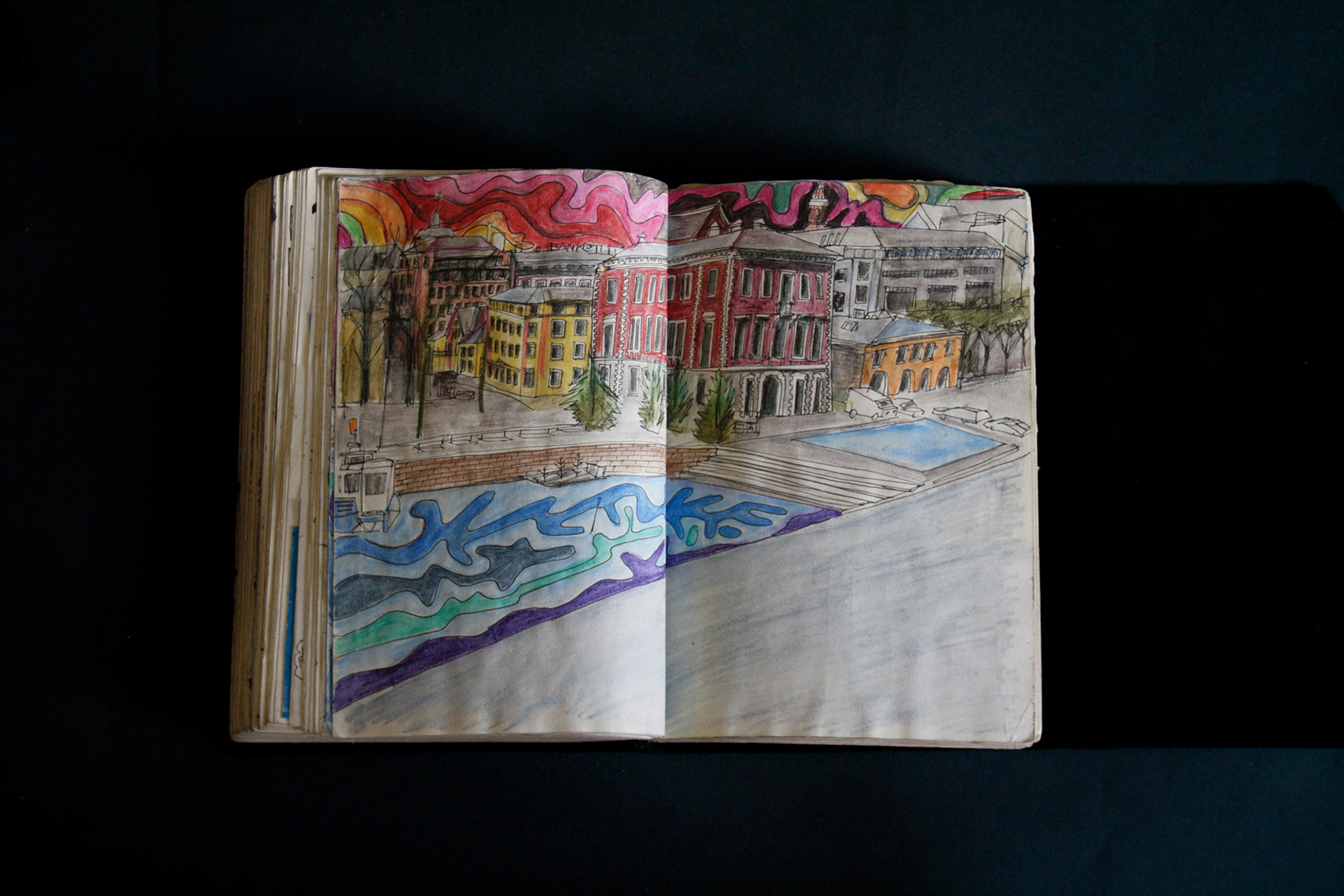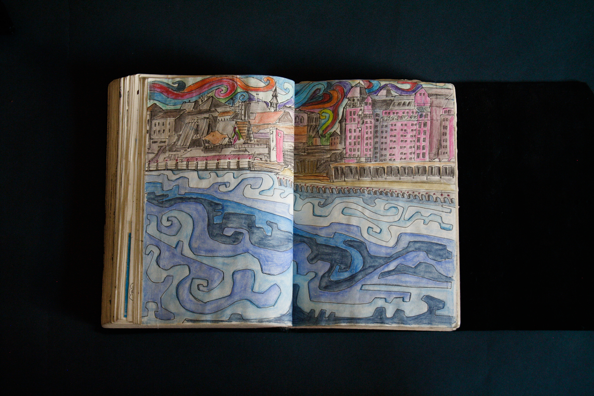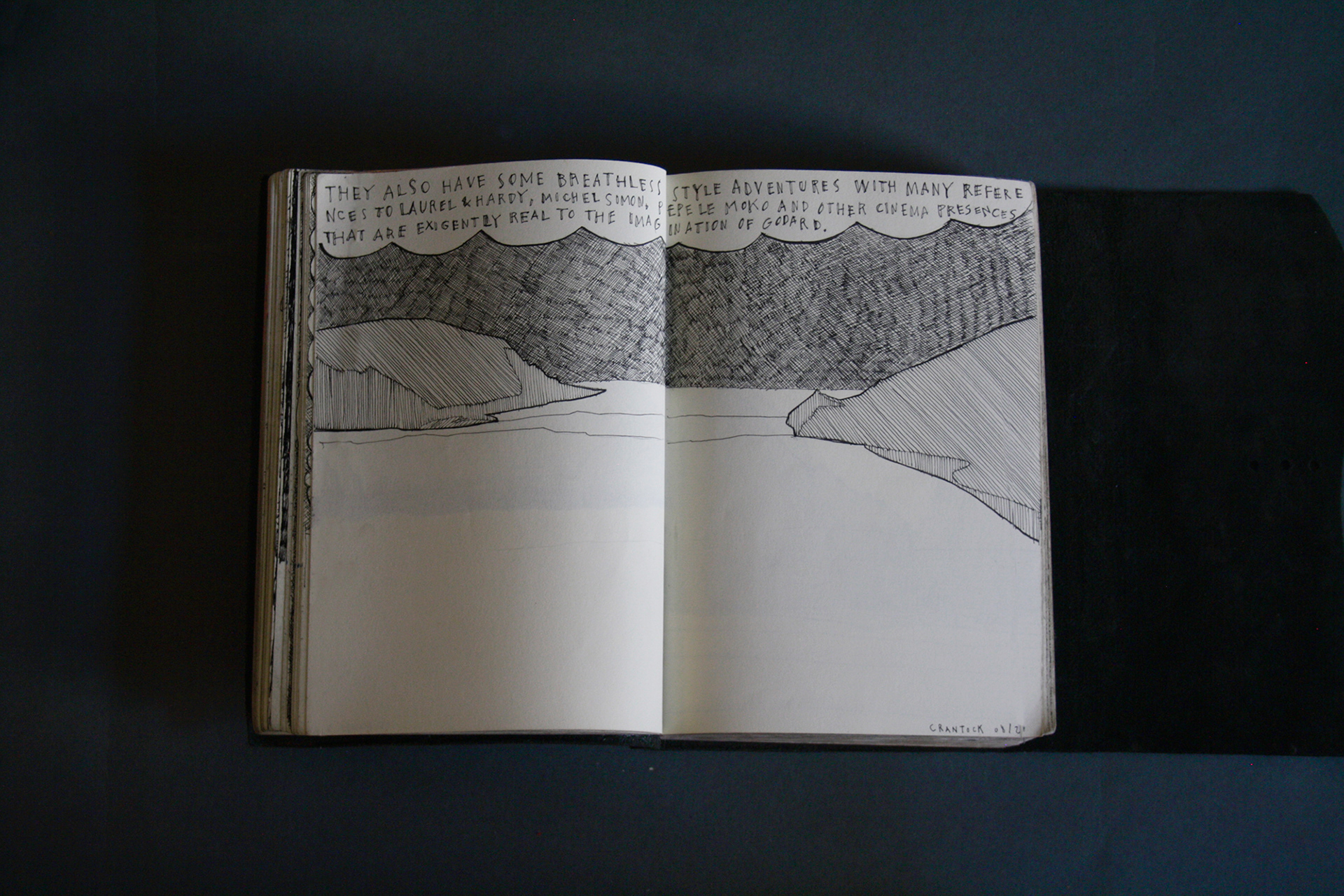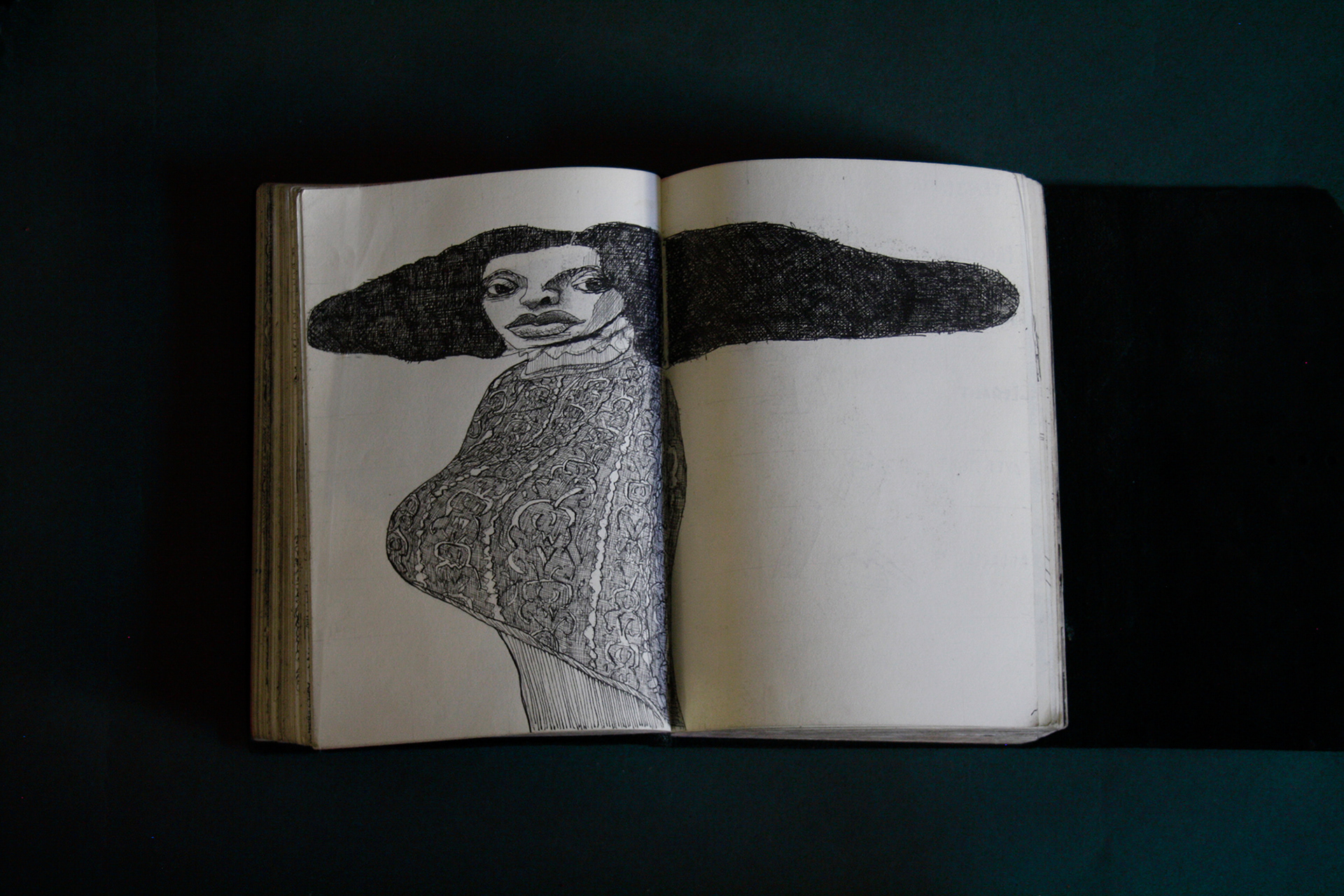 This book is therefore, somewhat gloomy in places. The first section, where all the unpleasant stuff happens is solely in black and white. Then there is a spell where I was blank. I remember reading Denis Johnson's Fiskadoro and thinking, oh, I'll draw a clarinet, but I could barely be bothered. Then I signed up to study a BA in Creative Arts Practice at Bath Spa University and my mood improved. Inverse to my earnings.