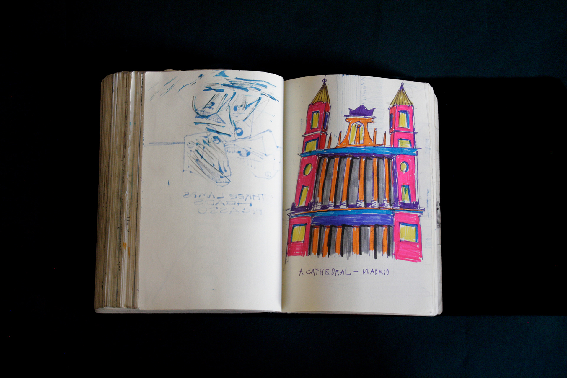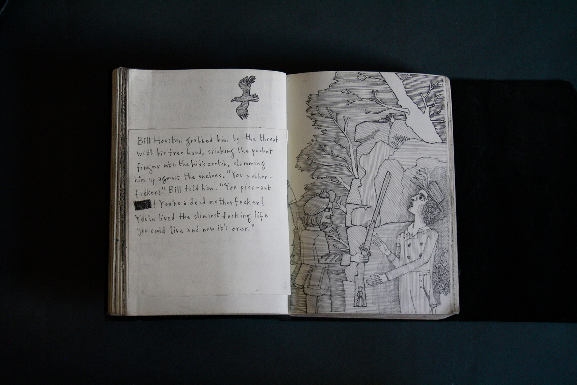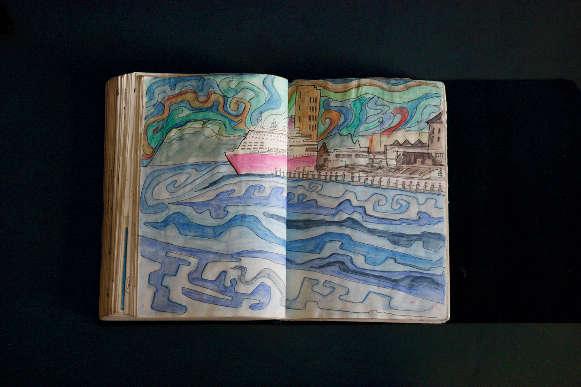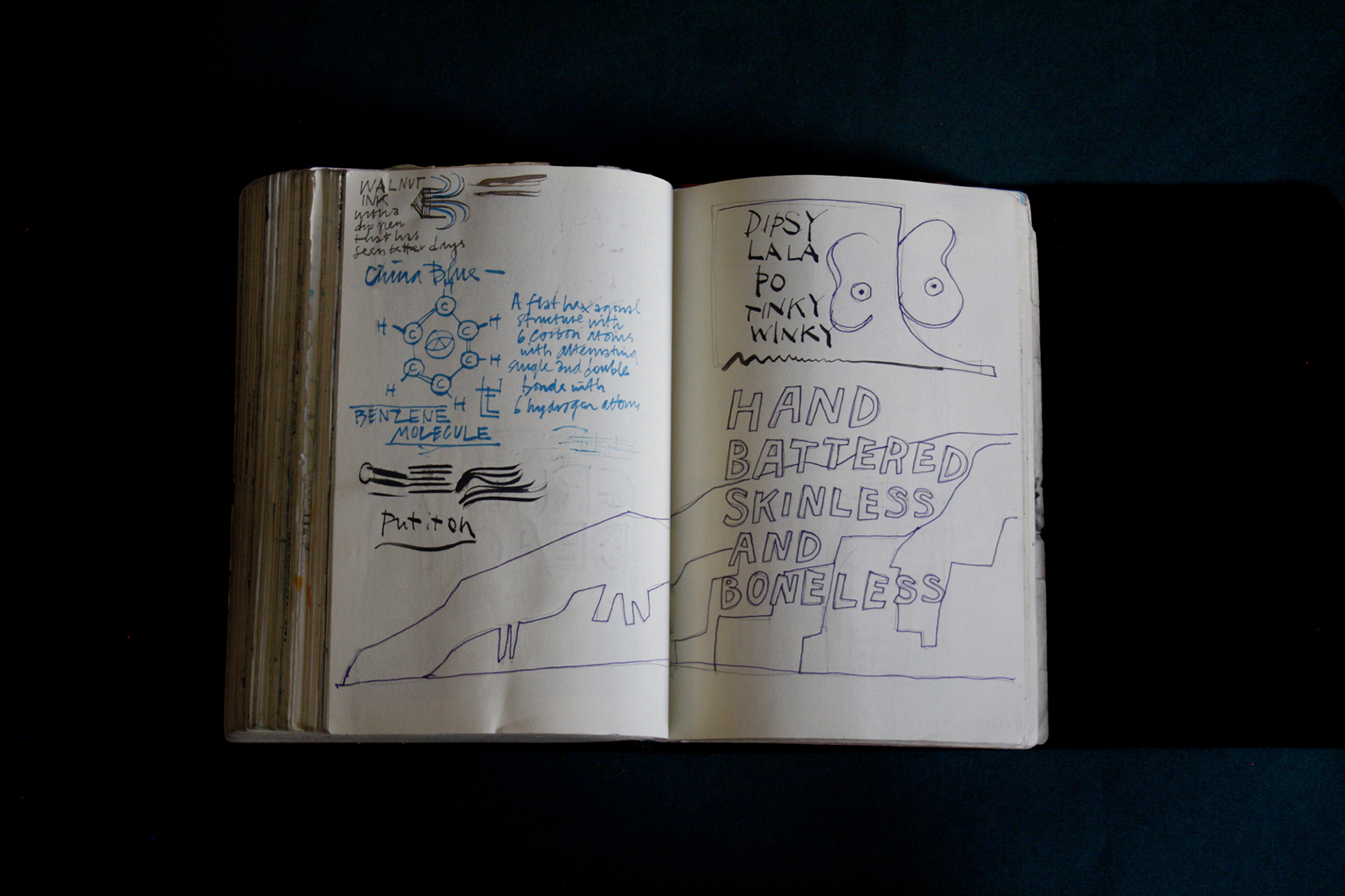 This book is therefore, somewhat gloomy in places. The first section, where all the unpleasant stuff happens is solely in black and white. Then there is a spell where I was blank. I remember reading Denis Johnson's Fiskadoro and thinking, oh, I'll draw a clarinet, but I could barely be bothered. Then I signed up to study a BA in Creative Arts Practice at Bath Spa University and my mood improved. Inverse to my earnings.