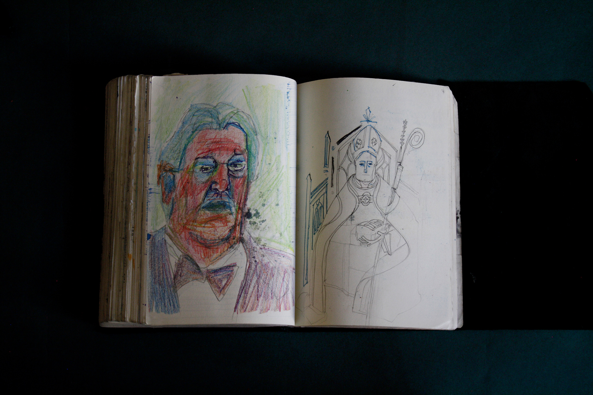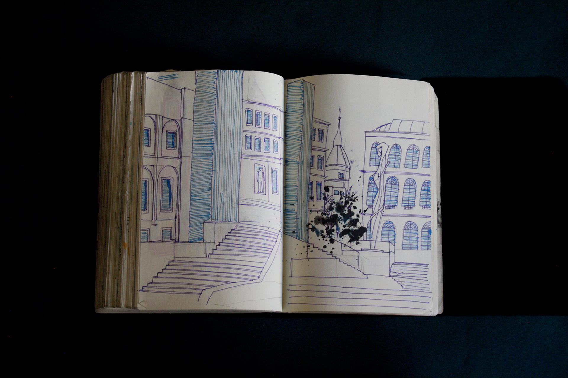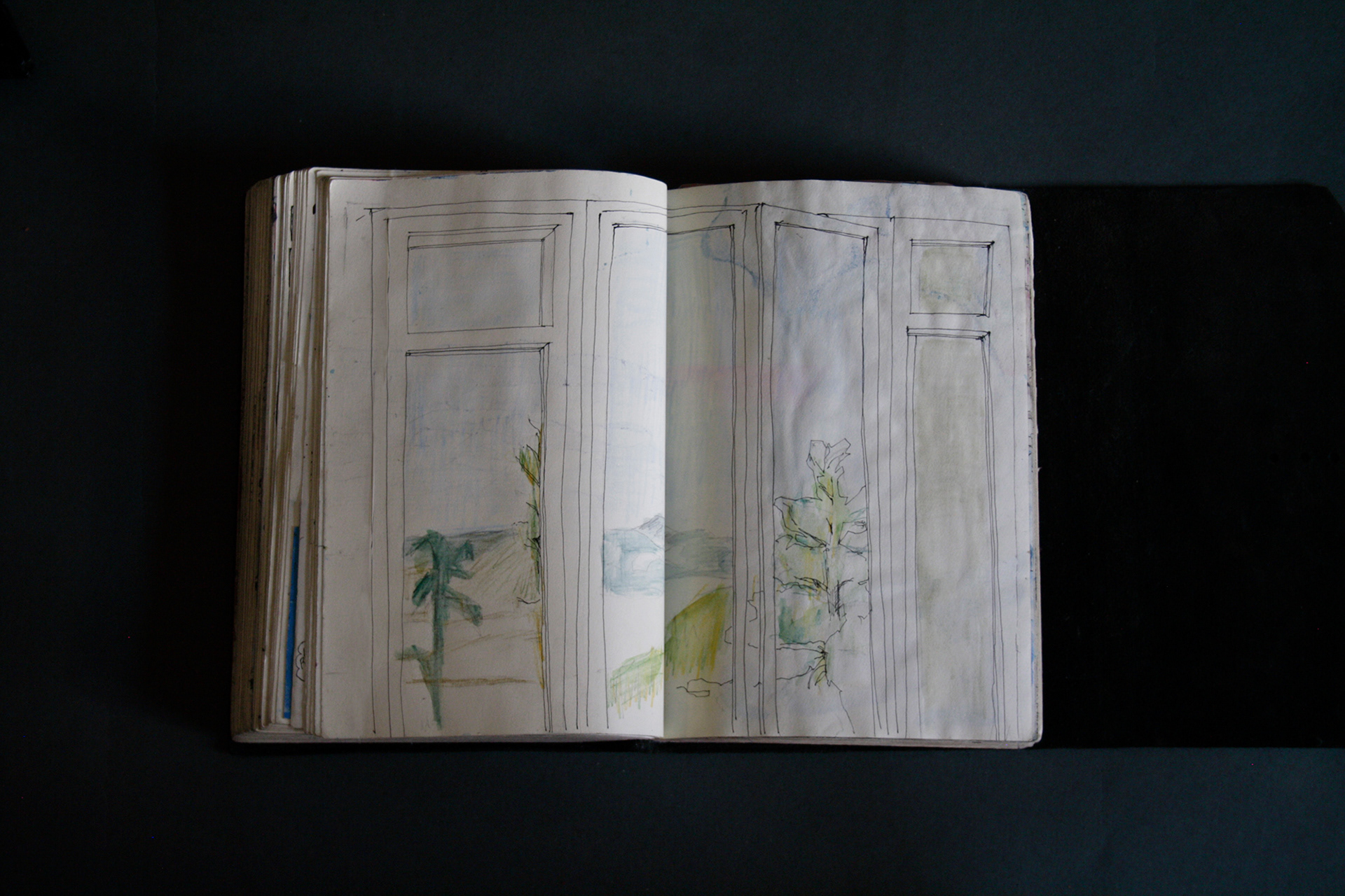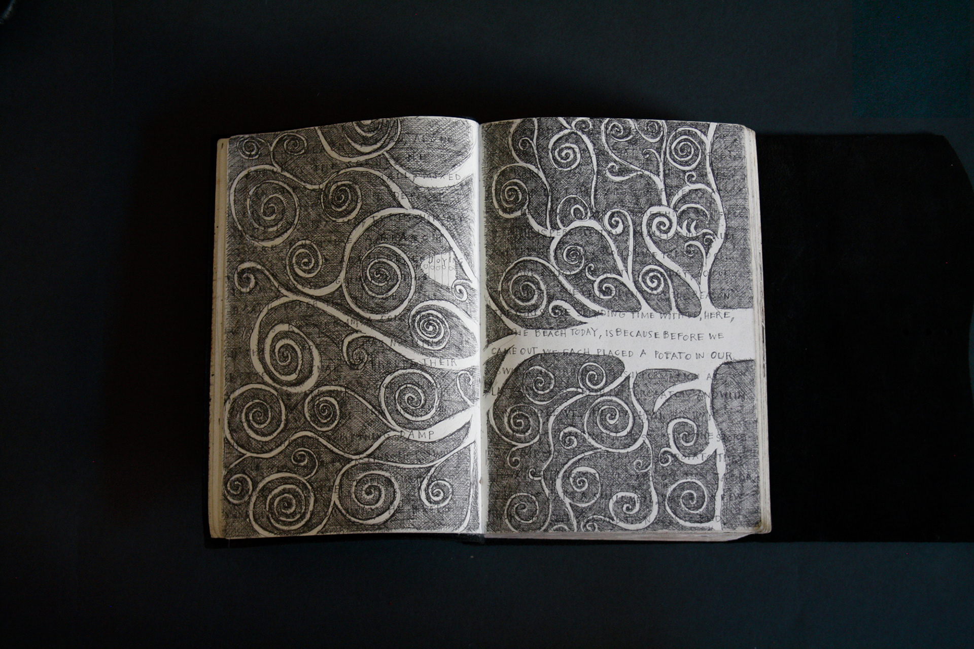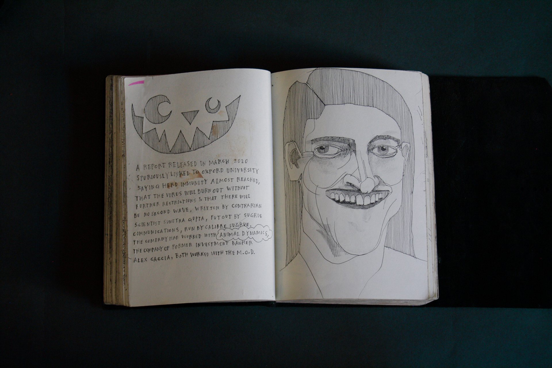 This book is therefore, somewhat gloomy in places. The first section, where all the unpleasant stuff happens is solely in black and white. Then there is a spell where I was blank. I remember reading Denis Johnson's Fiskadoro and thinking, oh, I'll draw a clarinet, but I could barely be bothered. Then I signed up to study a BA in Creative Arts Practice at Bath Spa University and my mood improved. Inverse to my earnings.