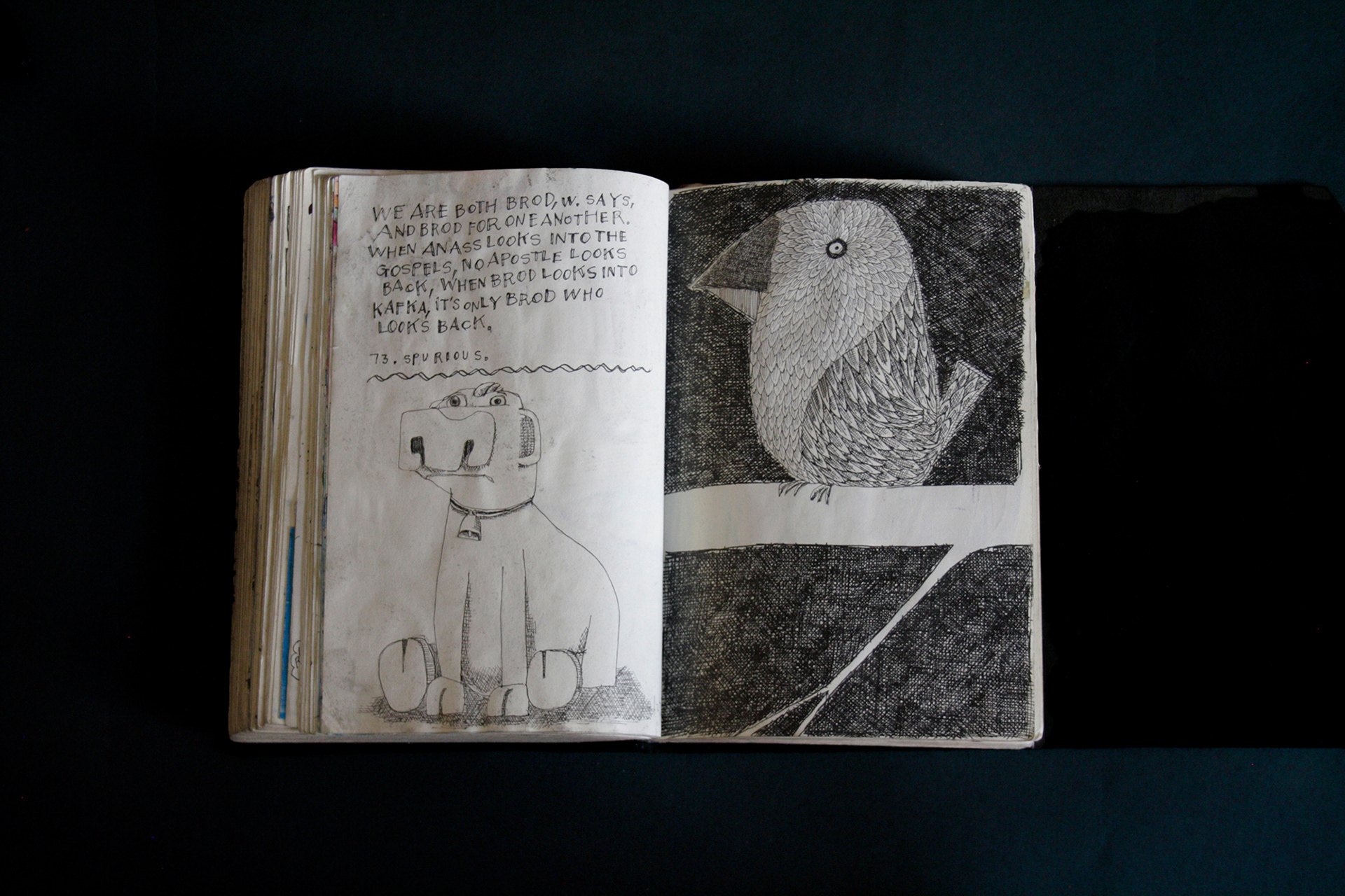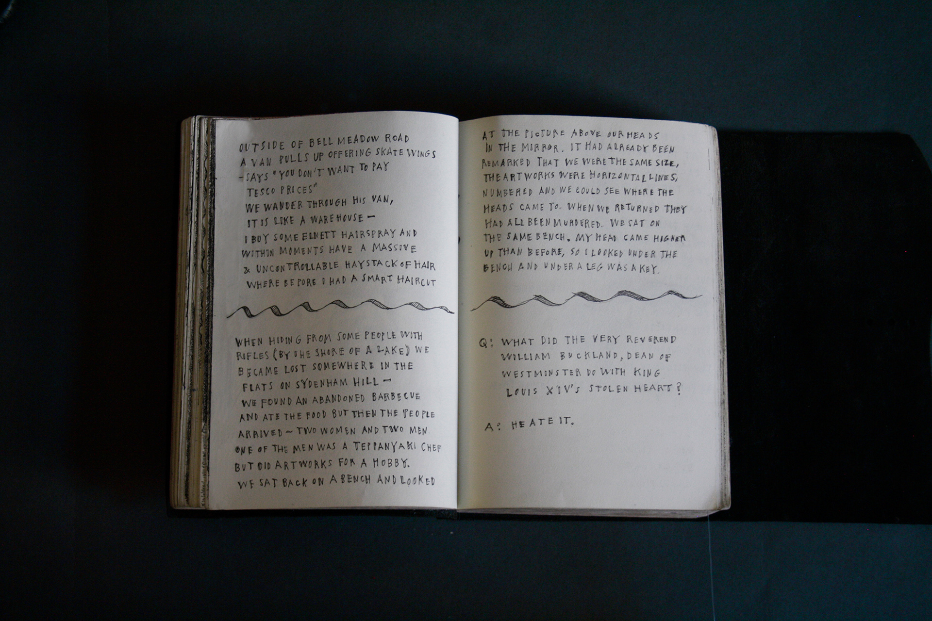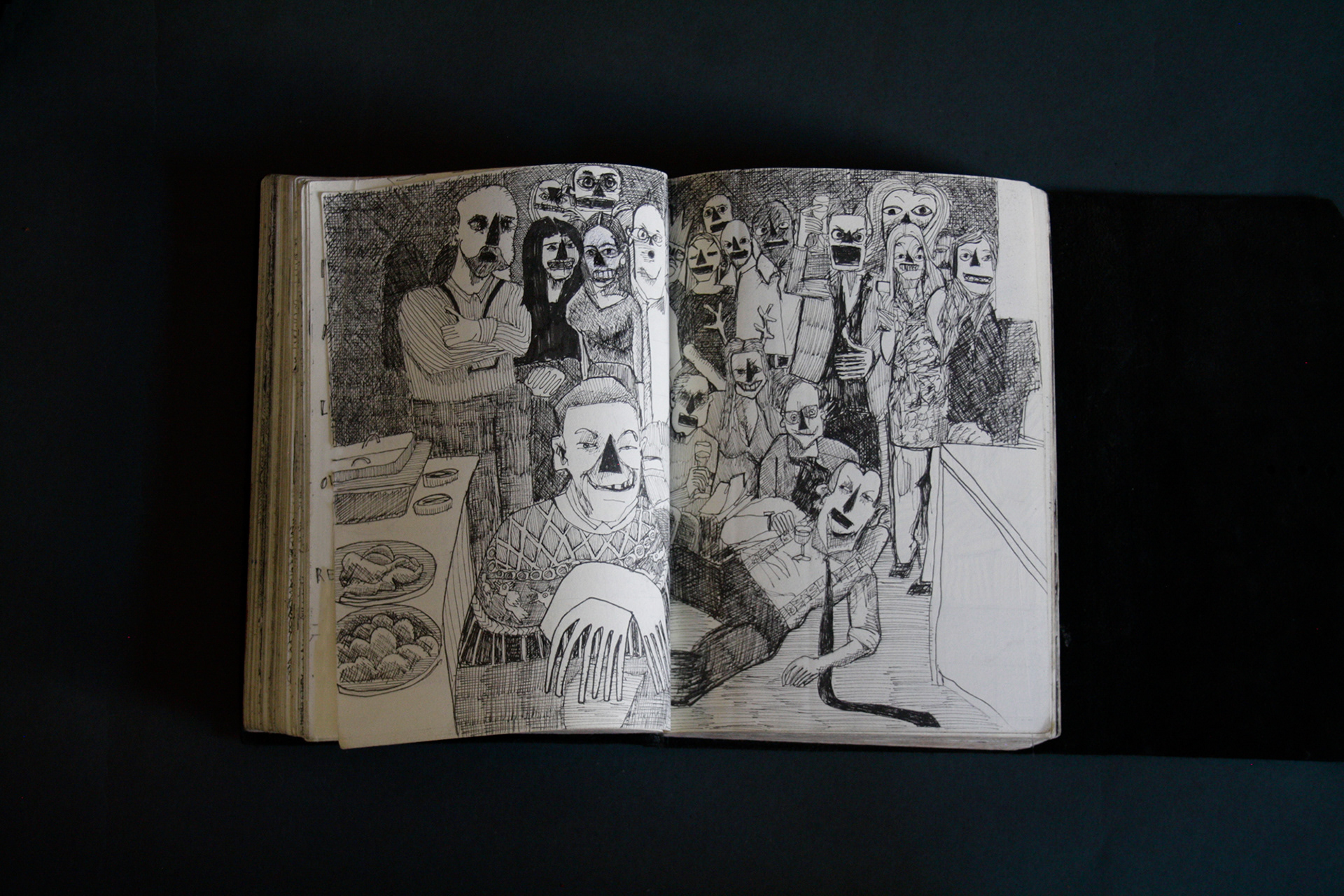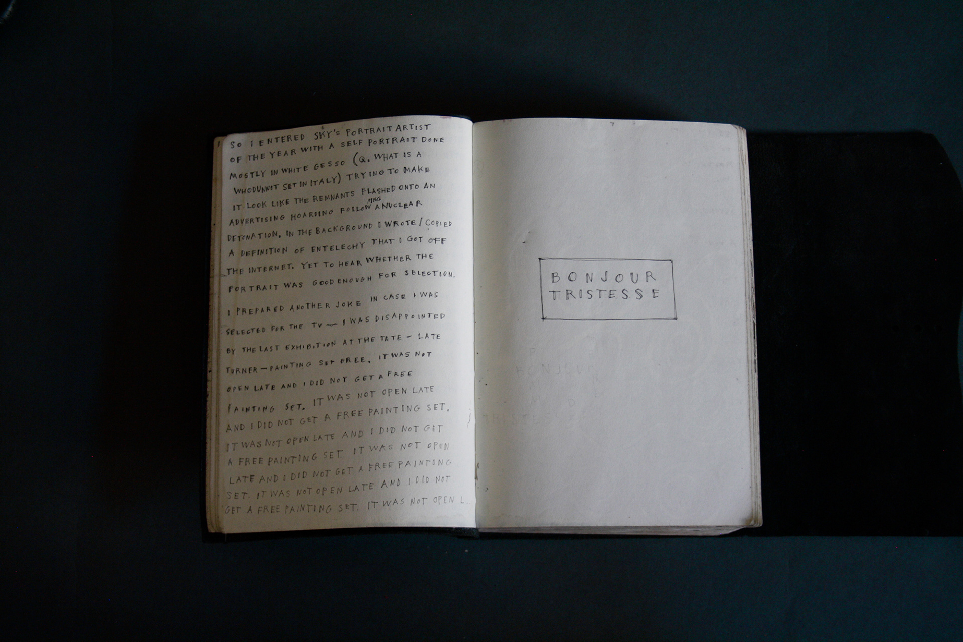 On the first page of the third black book, it states it was begun on the 3rd February 2021. This was the beginning of a difficult time. My mother had been diagnosed with cancer. I was hospitalised with heart disease. Then my mother died. Then I was hospitalised again with septic shock and a giant elbow. So this book is somewhat gloomy in places. The first section, where all the unpleasant stuff happens is solely in black and white. Then there is a spell where I was pretty blank. I look at the 2 spreads with the clarinet and remember that I had no idea where to go. Then I signed up to study a BA in Creative Arts Practise at Bath Spa University and travelled a bit and things got it little better. Book 4 is currently in progress.