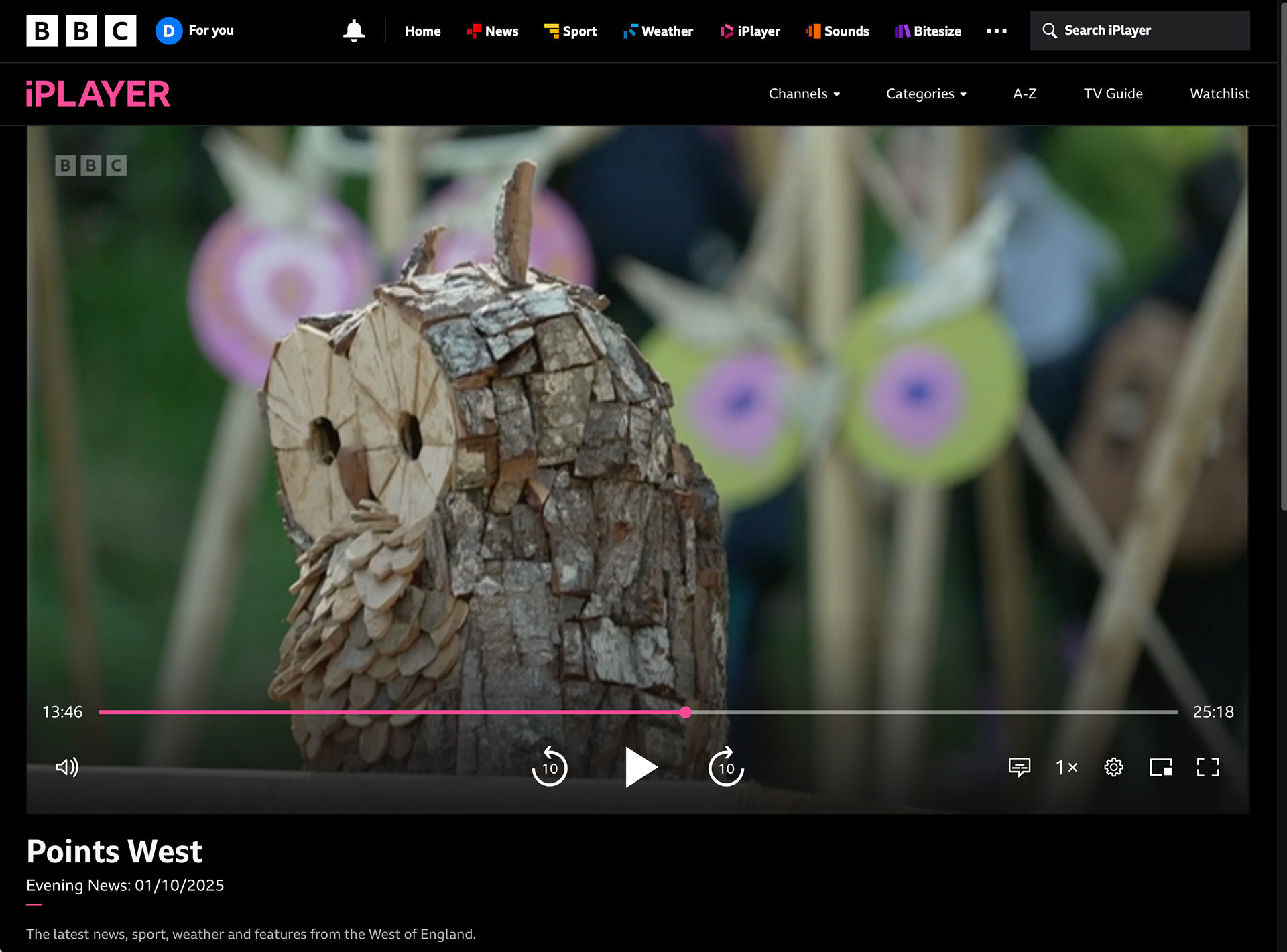 There was a feature on the Forest of Imagination on Points West at 6.30 in the evening on the 1st October. The day before it closed. I have always wanted to appear on Points West, and it finally happened, via a wooden owl I had made. If you drive down Pulteney Road South and look up at the windows just before you get to Widcombe Junior School, you might see this owl looking out of my studio window.