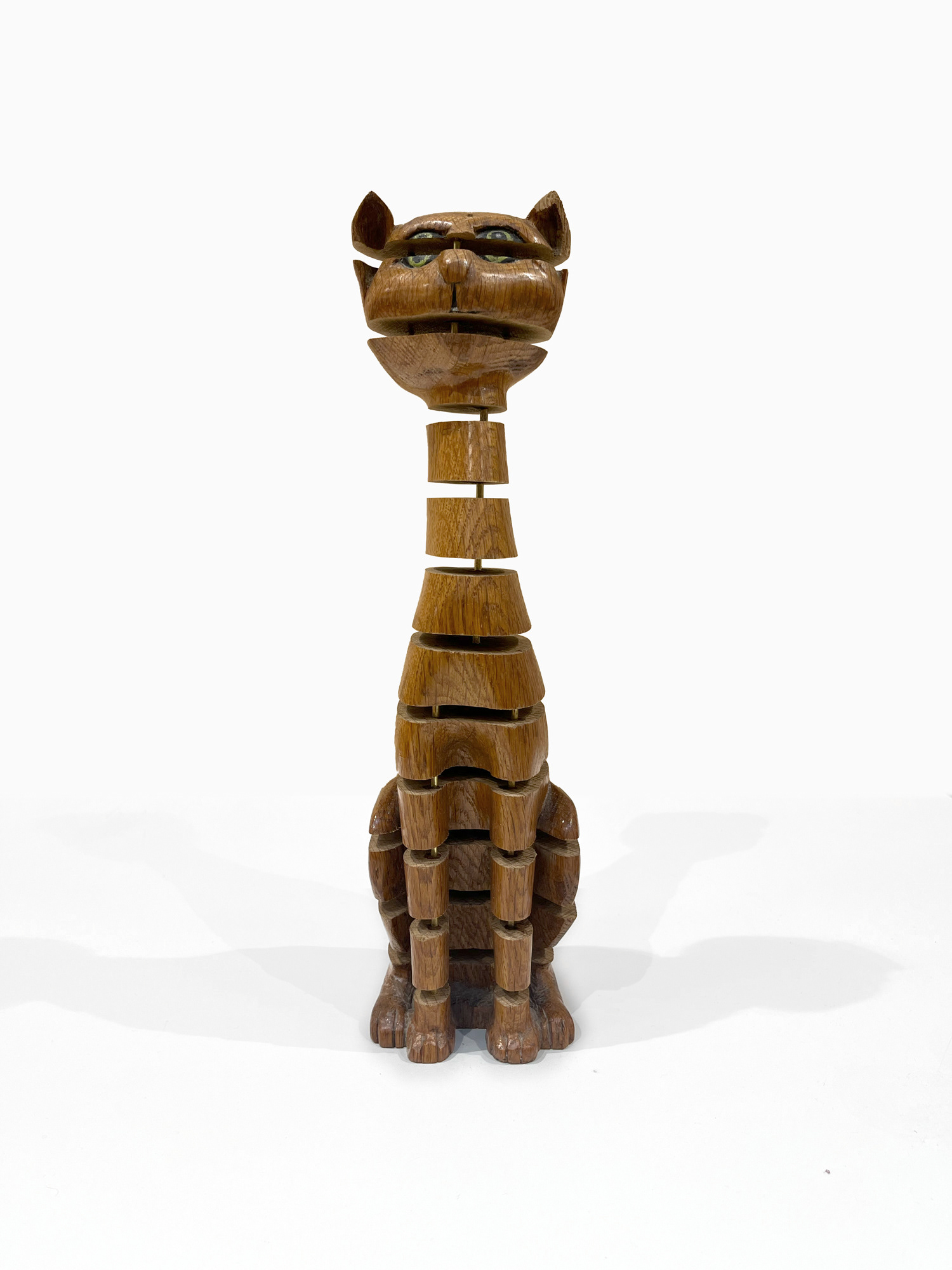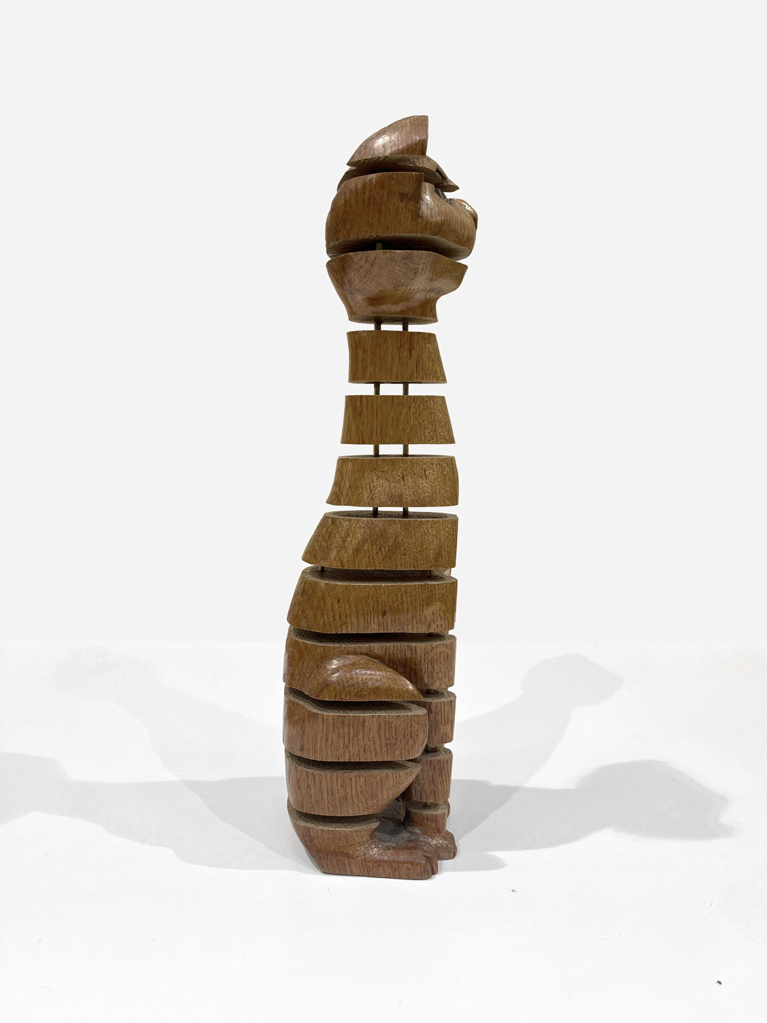The wooden cat sculpture originally belonged to my mother. Her boyfriend at the time, a man called Bernt who lived somewhere in Austria, carved it for her from a piece of oak. She liked the sculpture and it appeared in various locations around my childhood home, despite the face that my father did not like the sculpture because it was from a previous romance. So it goes.