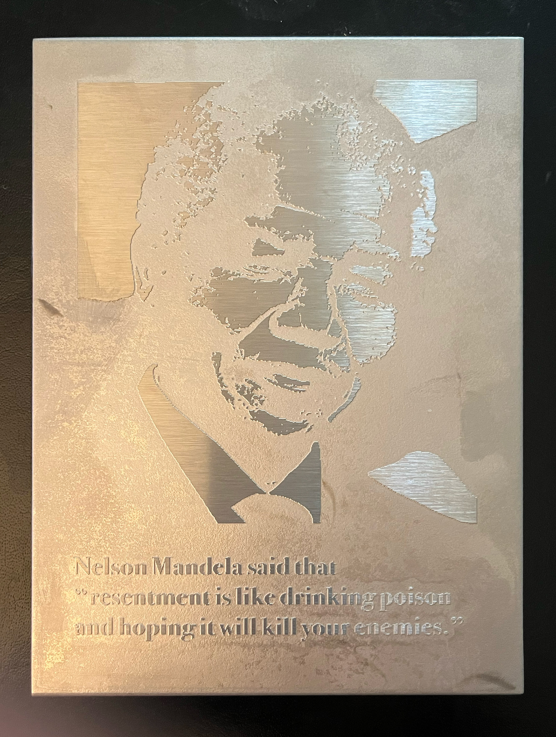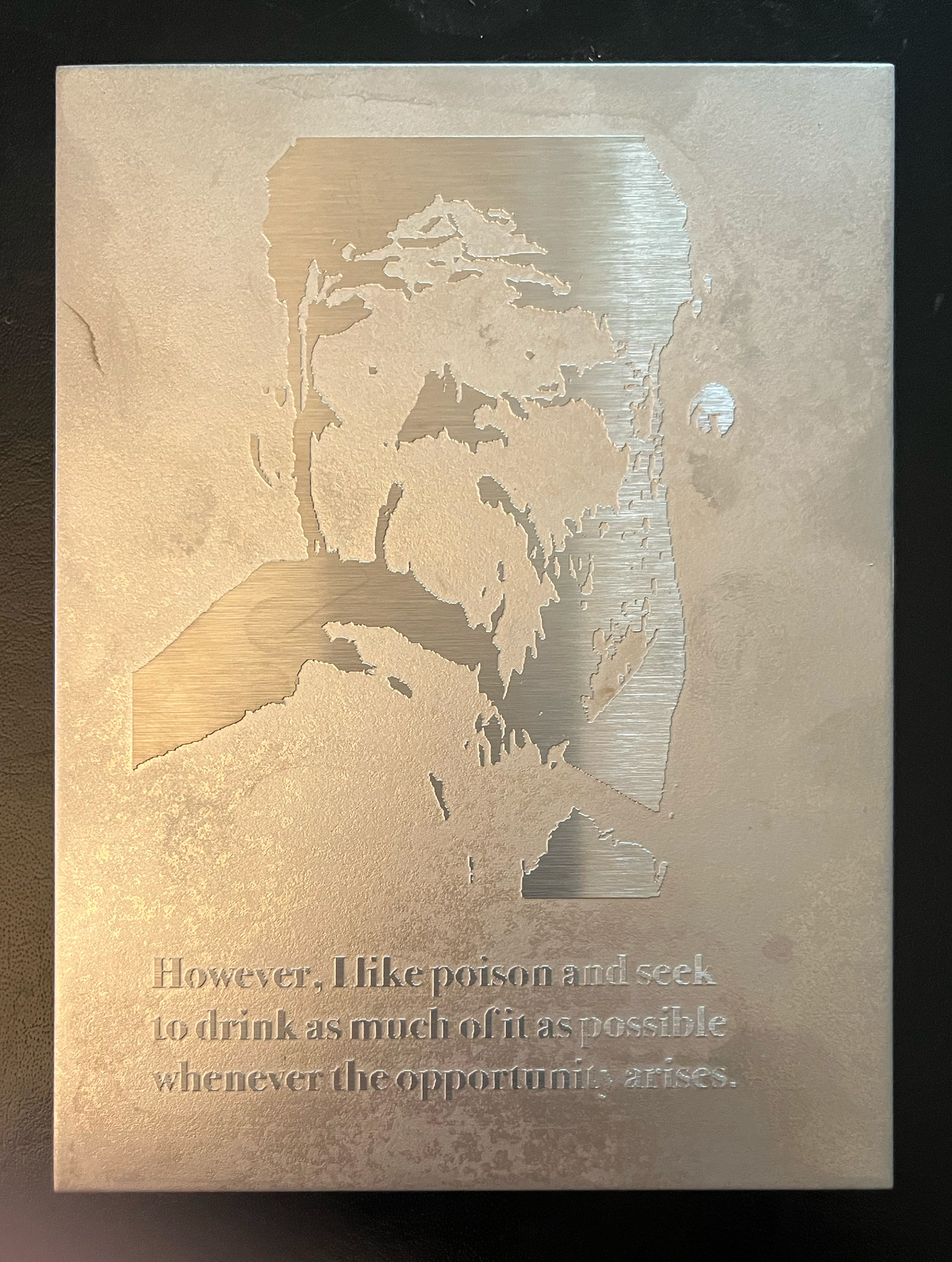 My piece for the Devour The Sour group exhibition at Walcott Chapel. Two pieces of acid etched zinc, featuring Nelson Mandela and Slobodan Praljak, with two poison bottles on bespoke shelves, one full, one empty. I had a few tee-shirts made for the occasion.