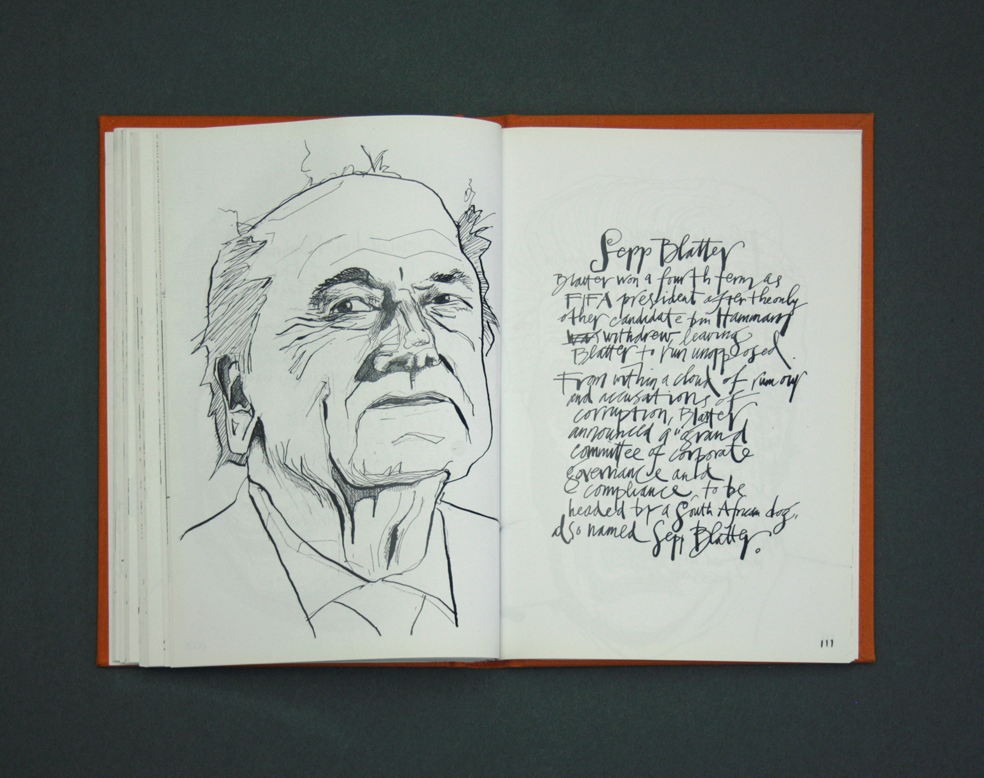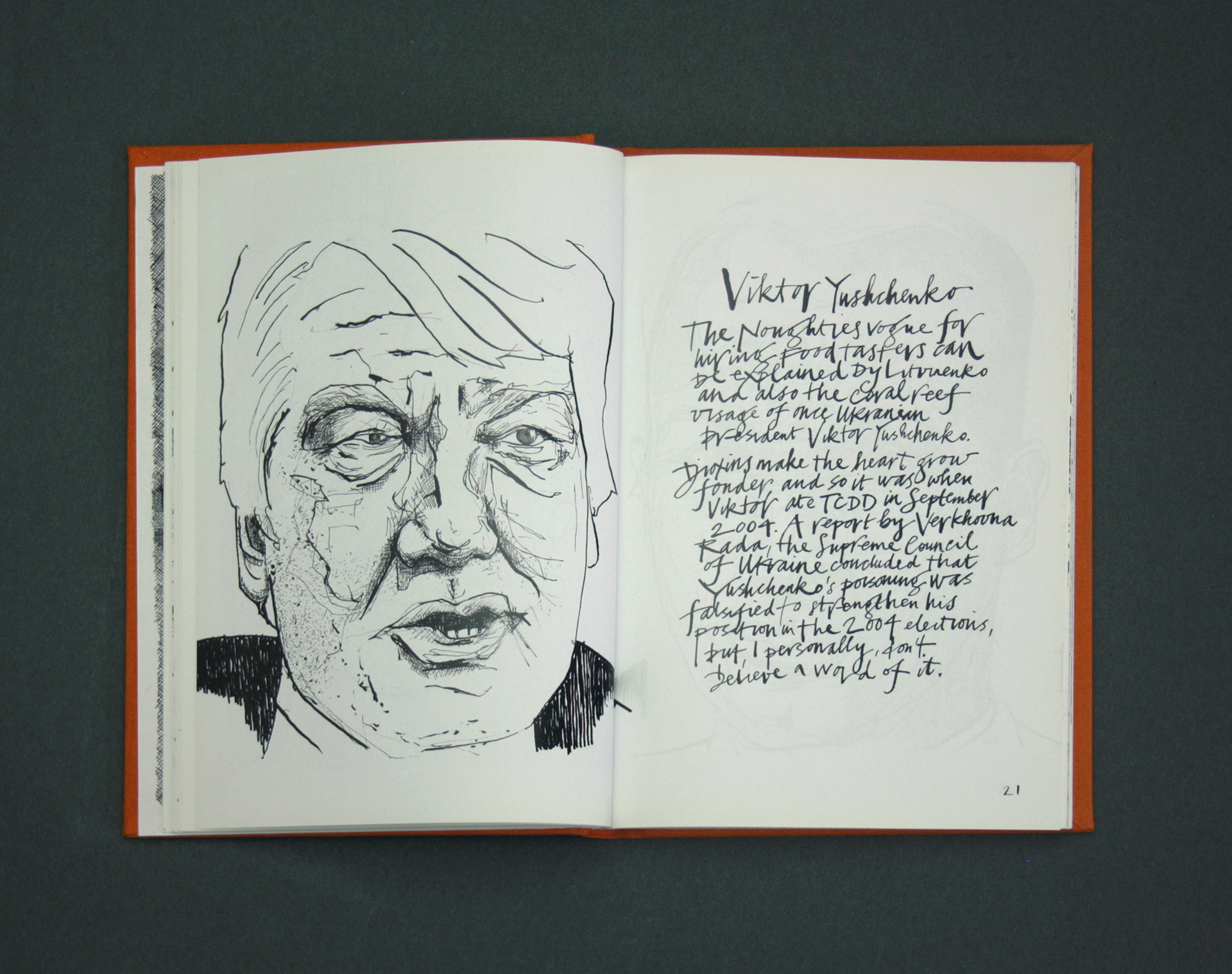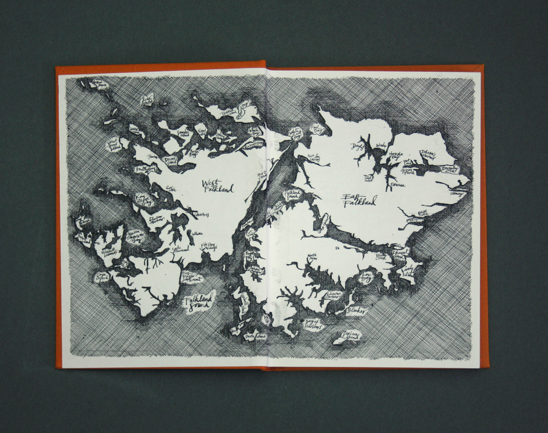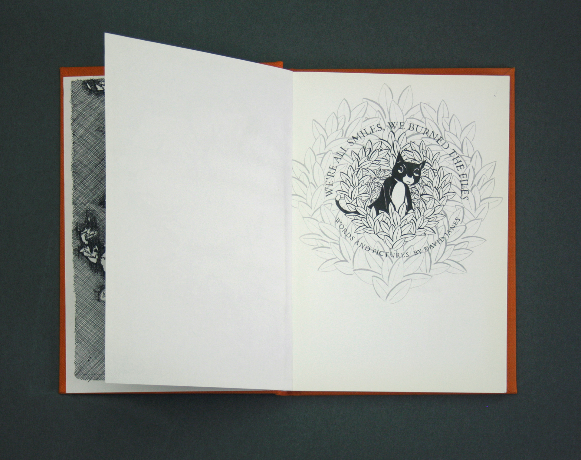2013. A5 Hardback book, 200 copies. Black and white illustrations and text. Foiled cover in orange and blue.